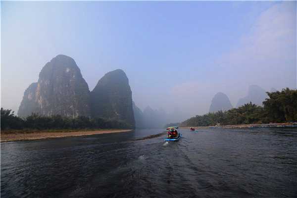 小小竹排江中游,虽然2月份不是漓江美的时候,但大家坐着竹筏,欣赏秀丽的漓江山水,心里还是非常满足。