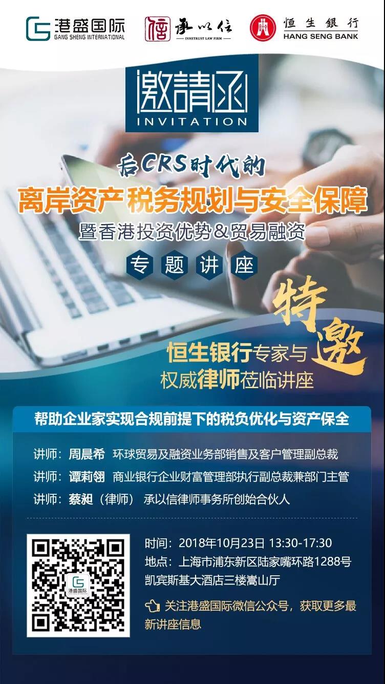 《后CRS时代的离岸资产税务规划与香港投资优势、贸易融资》专题讲座
