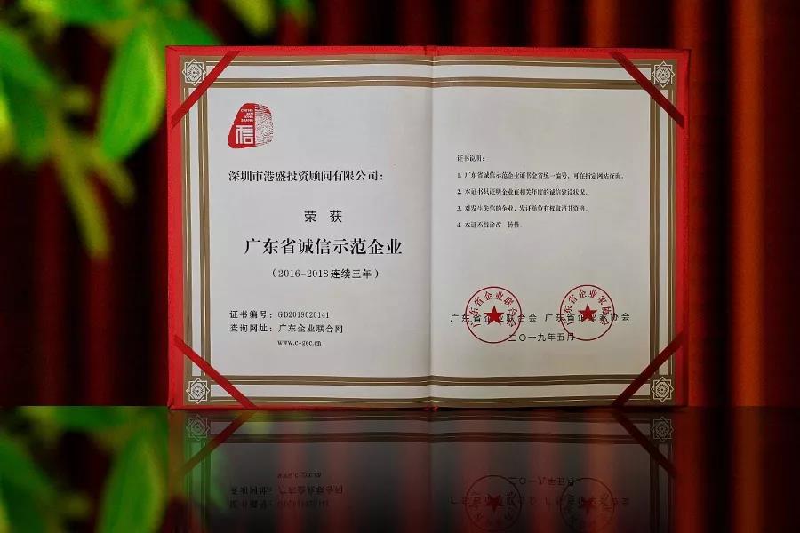 5月,港盛国际集团通过广东省企业联合会、企业家协会的层层筛选,凭借良好的企业信誉及品牌综合实力,在众多企业中脱颖而出,连续三年再次获评“广东省诚信示范企业”荣誉称号。