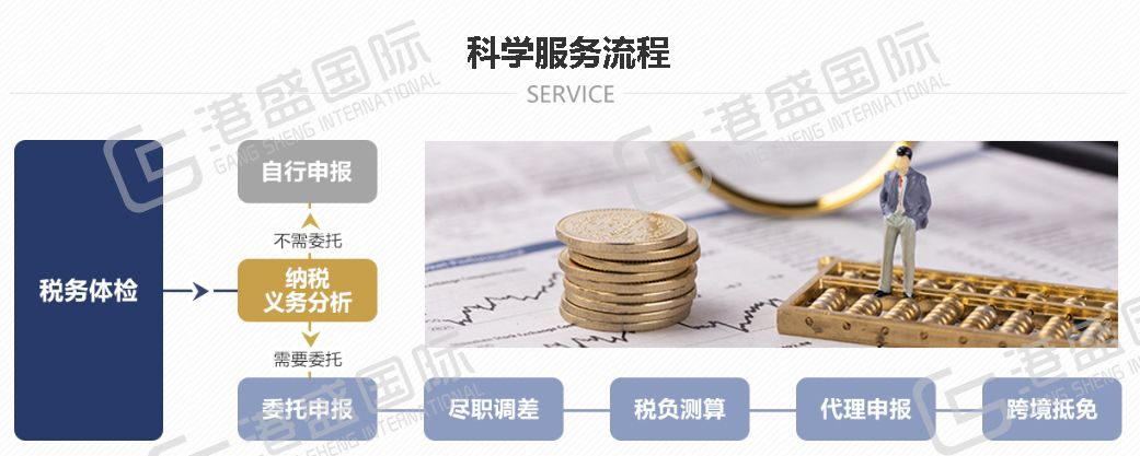 港盛国际可提供全方位的税务专业服务,为您的税务申报与缴纳业务提供一条龙的咨询和办理服务。保证申报的准确性、合规性,谋求合规前提下的最大节税效果,并有效防范逃税漏税及潜在法税风险。
