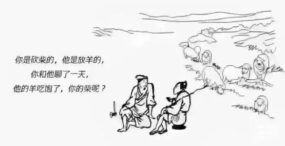 你是砍柴的,他是放羊的,你和他聊了一天,你学会了放羊技巧,原来羊是这么放的,他学会了砍柴技能,原来柴要这样砍。而且你从放羊的身上学到了一种定力,明白了"以静制动"的道理,从此砍柴更加轻松。