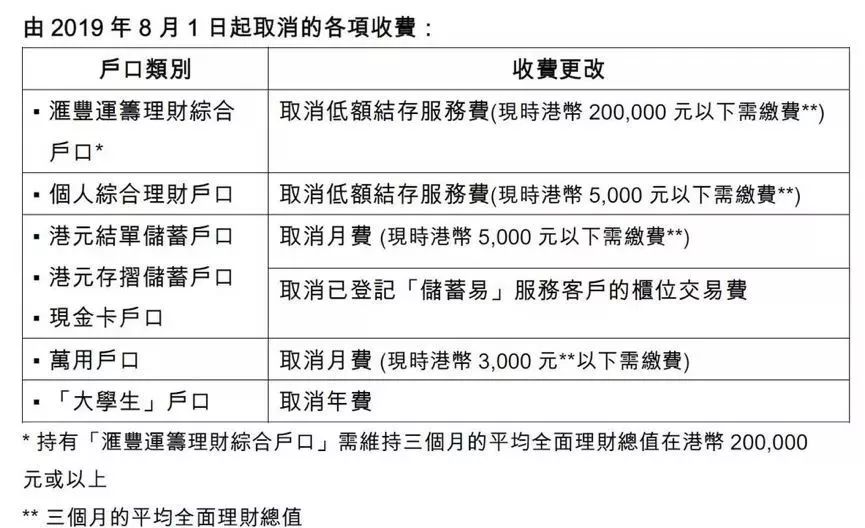 按照汇丰此前要求,其对余额不足5000港元的“个人综合理财户口”征收60港元的月费,对余额不足20万港元的“运筹理财综合户口”征收120港元的月费。此次举措,将使超过300万名汇丰个人客户受惠。