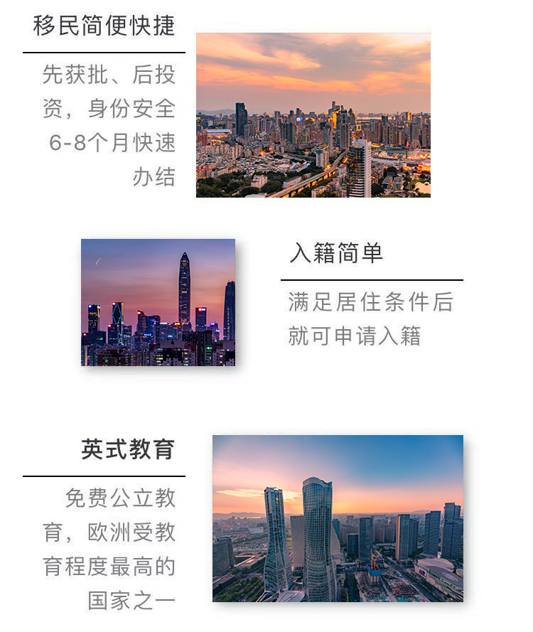 爱尔兰经济发达、环境优渥,有“凯尔特之虎”、“翡翠绿岛”等美誉,作为欧盟成员国及英国的“CommonTravel Area”,爱尔兰同时兼享英国和欧盟国双重福利的国度。近年来,爱尔兰开放的移民政策、高含金量的移民身份,让爱尔兰备受全球移民者青睐。