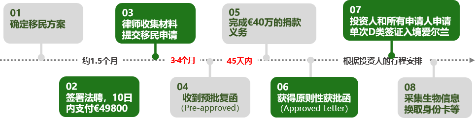 个人捐赠50万欧元至爱尔兰公共设施(比如教育、艺术、公益项目等)。如果团体捐赠,捐款的金额可以降低至40万欧元。捐款方式虽然无法获得回报,但是它的优势在于获批速度最快,而且所要求的材料也相当简单。