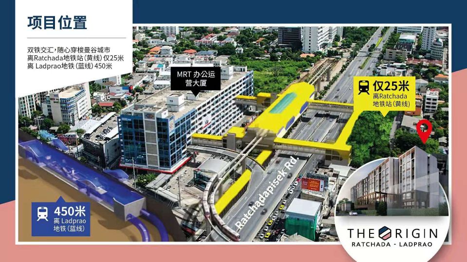 2.MRT双线交汇,距离黄色线Ratchada站仅25米,距离蓝色线Ladprao站450米