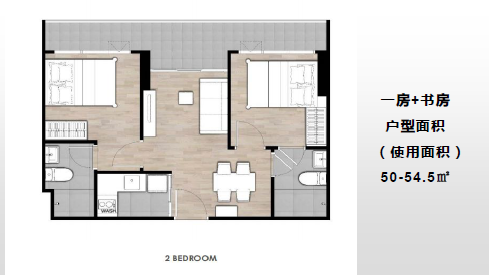 房型主打小面积,高利用率,室内多储藏空间,部分房型配置衣帽间。