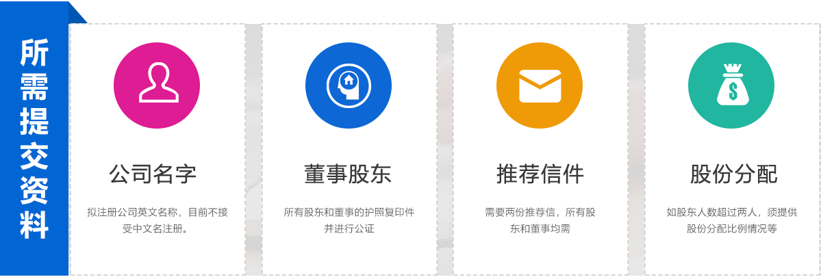 注册公司所需要资料:英文名称; 注册地址; 营业范围; 注册资本; 财务年度; 董事名单; 股东名单以及股份金额; 所有董事与股东的身份证扫描件; 如果能提供护照扫描件,需同时提供 。